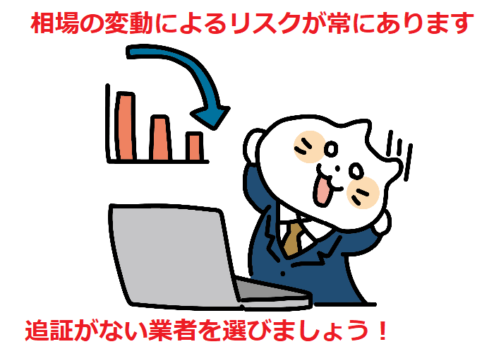 追証がない業者なら、口座入金分のみの損失で済む点が魅力的です。