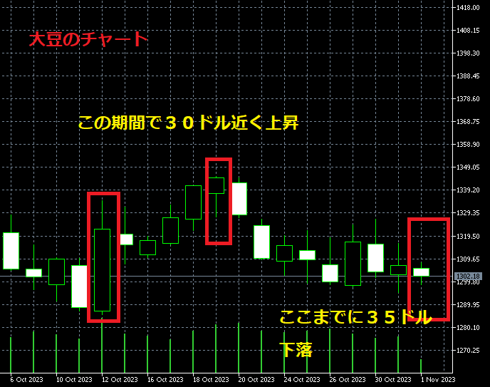 もしも、11月3日に大豆が大きく値上がりしても、損失が確定しているので意味がありません。