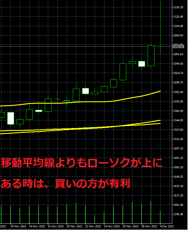 ちなみに、移動平均線の動きを見ると、買いの方が有利であることが分かります。
