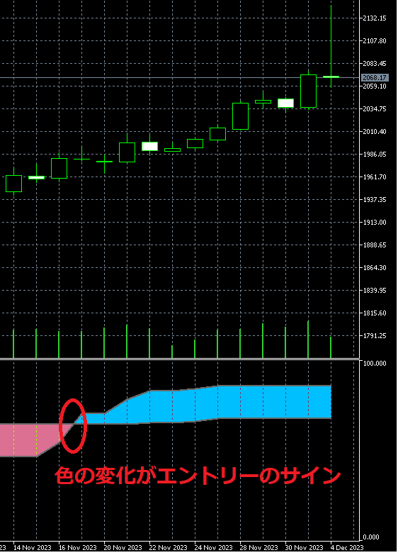 金のチャート上では11月の22日から、買いが有利な動きだったんだね!