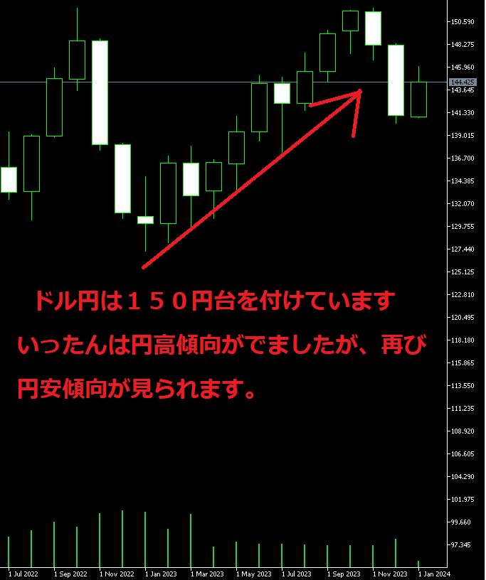 2024年以前よりドル円相場は円安傾向が続いていました。150円台まで円安が進行する場面もありました。
