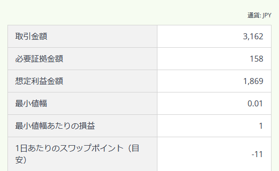 利益は1869円となる計算です(ここからスプレッドなどの手数料が掛かるので、数十円ほど利益は下がります。)
