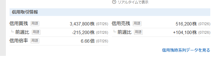 この会社の信用買いしている人たちは、株価が下落していることにより元本以上の損失のリスクを抱えています。(例えばレバレッジ2倍なら、元本の大半がなくなる)