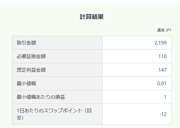 VIXのポイントが1上がれば、1取引数量当たり147円の利益となります。