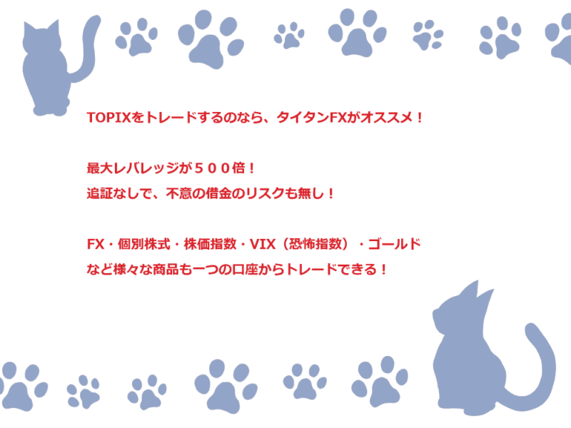 例えば2024年の8月にはTOPIXが急落する場面がありました。このような場合になっても、タイタンFXでトレードしていれば、借金のリスクなく安心できます。