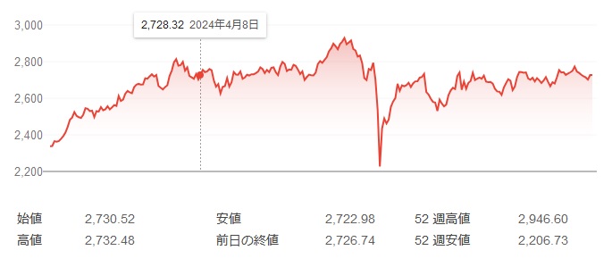 2700ポイントのTOPIXを10単位購入する場合(最も少額のケース)
