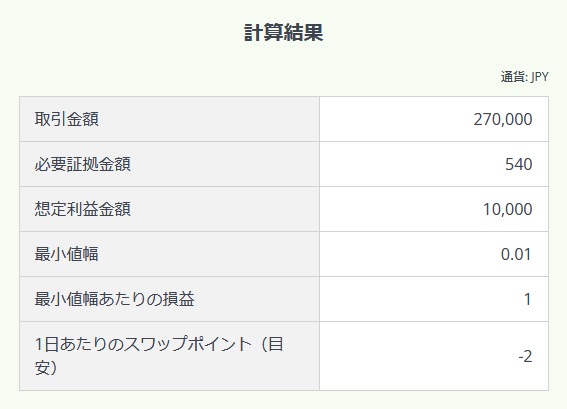 取引数量が10倍になれば、利益の額も10倍の2400円近くになる計算です。