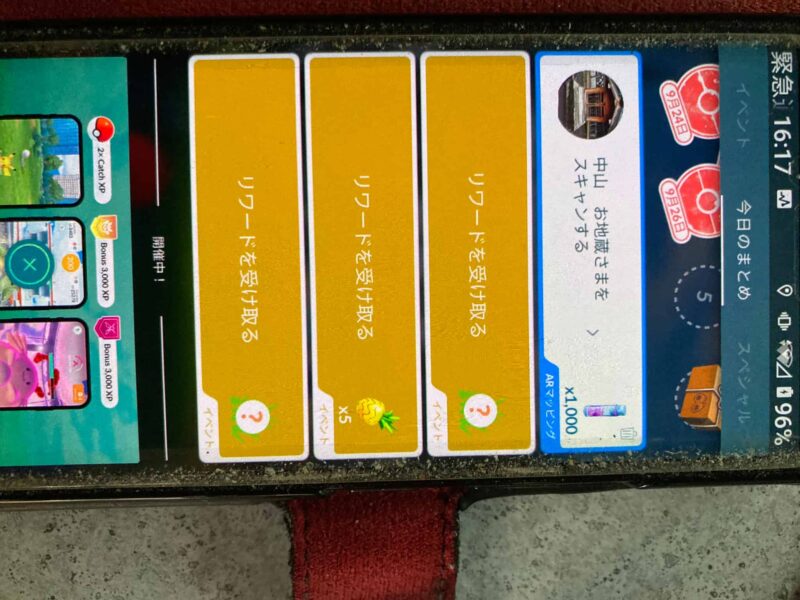 (落ちる時にはポケモンを捕まえるリワードになった。この記事の場合)
