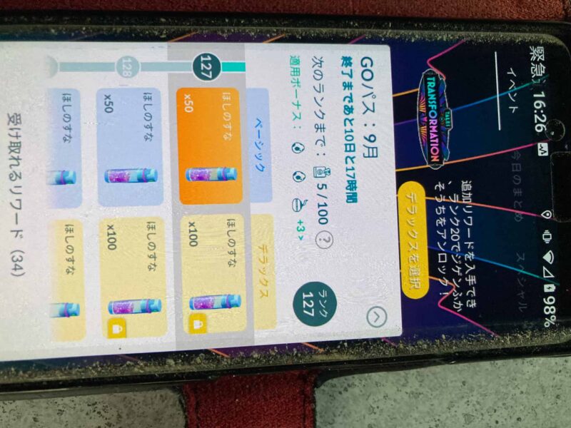 その3つを表示した後にリワードタスクのところに戻り、リワードを貰うを押すと、報酬ポケモンが表示されて捕まえることができます。